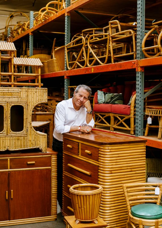 The success of Tropical Sun Rattan and Harvey’s on Beverly has made Harvey a go-to source for celebrities and tastemakers from the very start of his rattan business. One of his earliest major sales was providing a set of Frankl rattan furniture to Barbra Streisand for her Malibu beach house. A few years later, Harvey produced a version of Frankl’s Fan Arm Chair for the set of the hit TV series “The Golden Girls,” sparking a widespread rattan revival. Now, Harvey is still outfitting homes for style icons, such as Poppy and Cara Delevingne, whose tropical-themed rattan interior graced the cover of Architectural Digest in 2020.