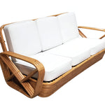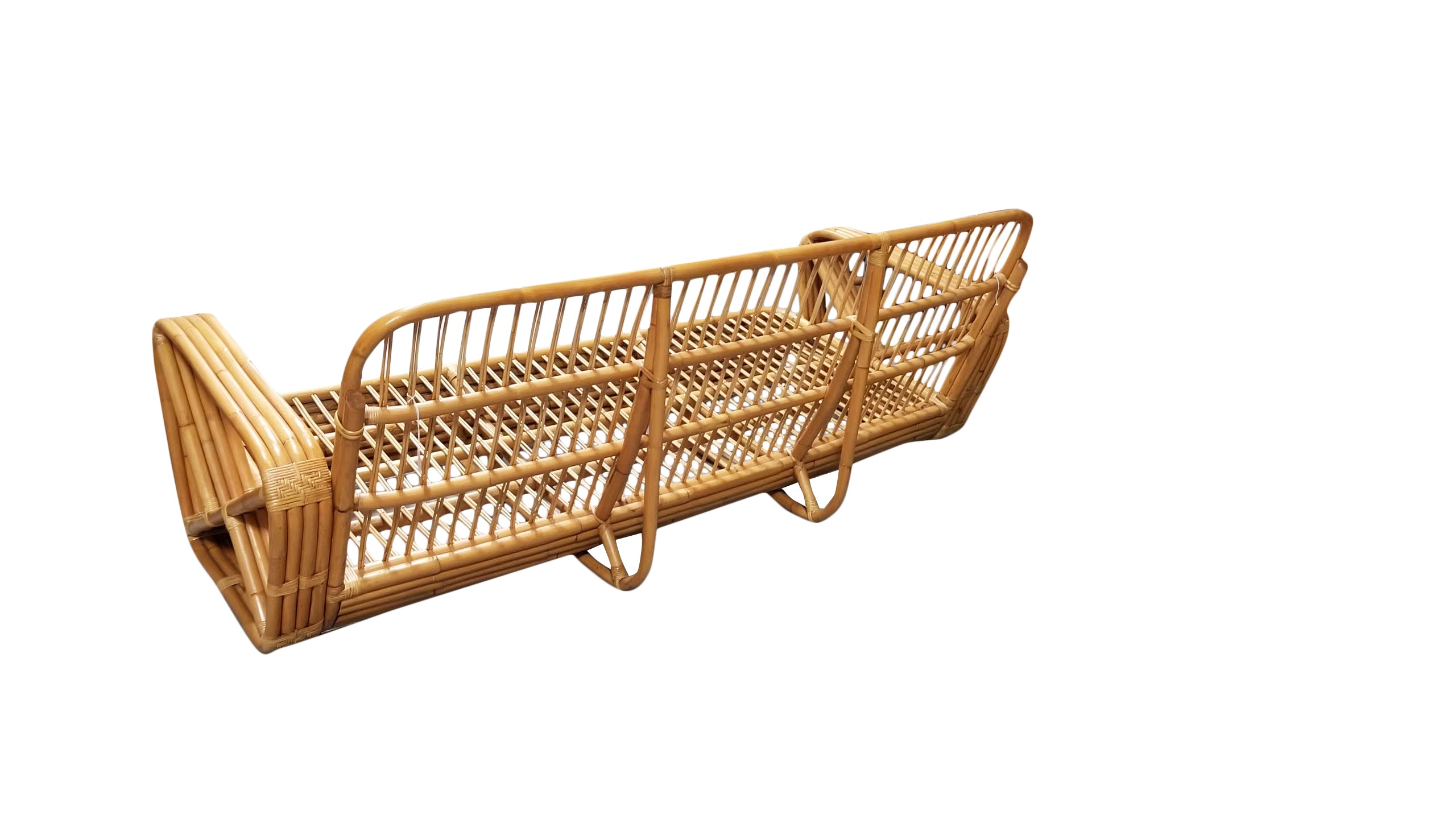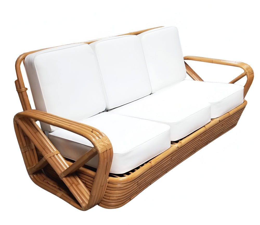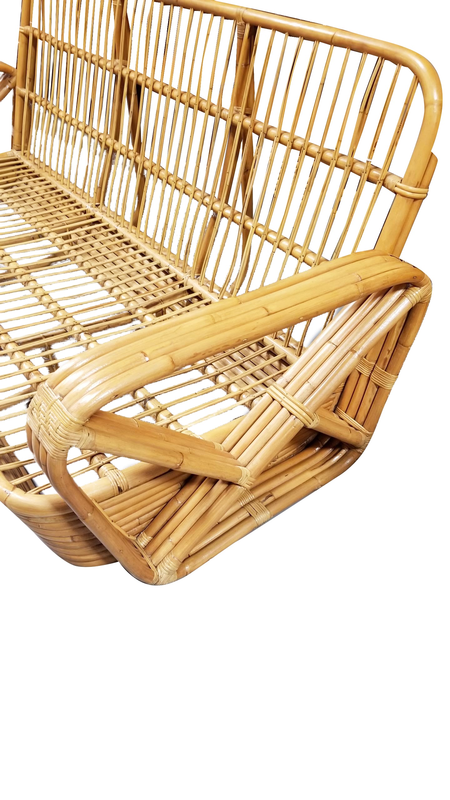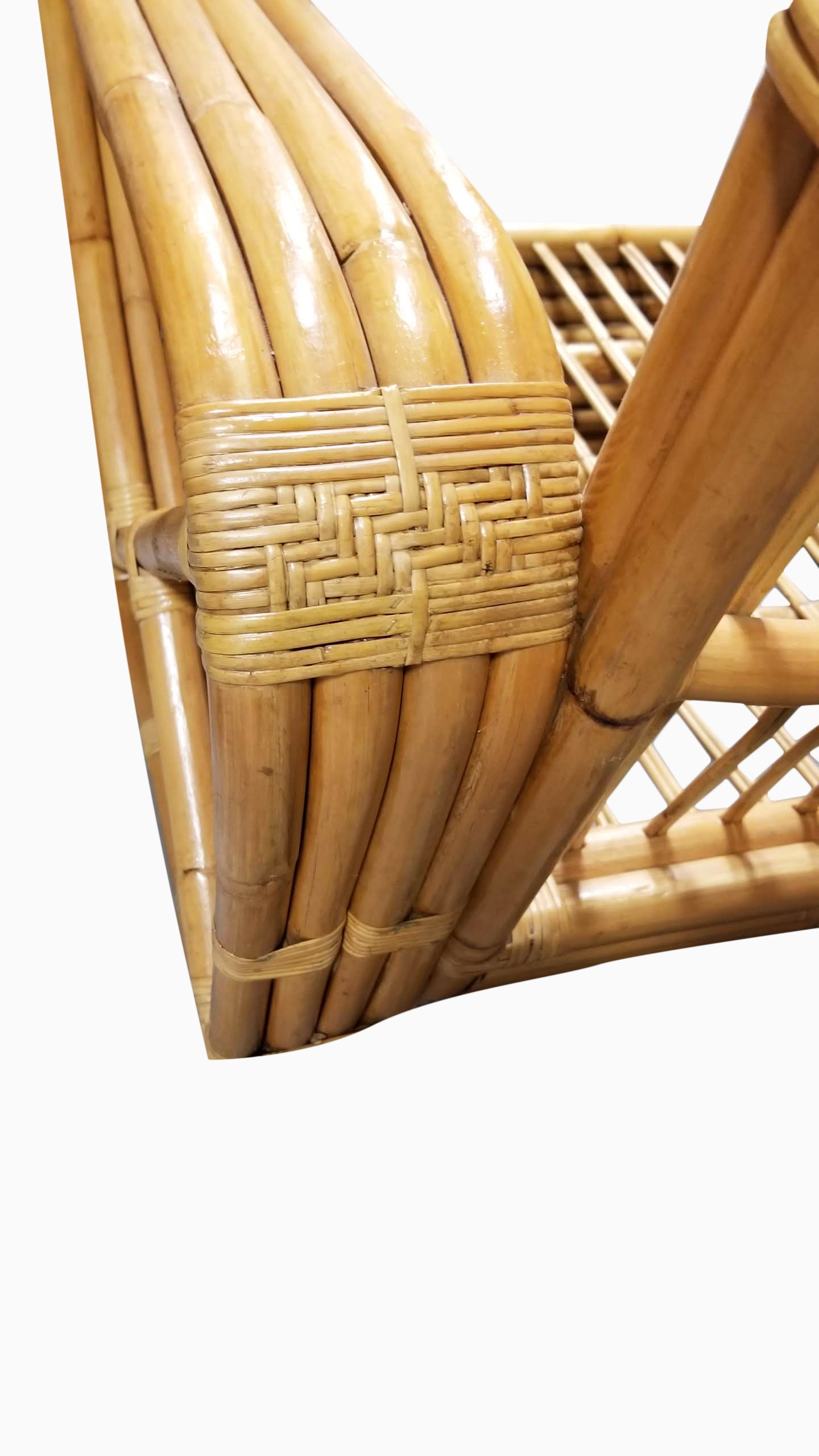 Rattan is a plant in the palm family, which grows in tropical jungles. The largest source today is still the Philippines. Tough, solid stems of palasan rattan vary from one to two inches in diameter and grow as vines 200 to 500 feet in length. An easily replenishable resource, rattan is almost impervious to rot, is lightweight, and easy to handle. It is extremely pliable and strong, which makes it an ideal material for furniture and a lighter alternative to wood. Once cleaned, the stems can be used in strands for wicker or whole for furniture frames. It withstands extreme conditions of humidity and temperature and has a natural resistance to bug damage. To learn more about rattan furniture, see Harvey Schwartz’s bookRattan Furniture: Tropical Comfort Throughout the House.