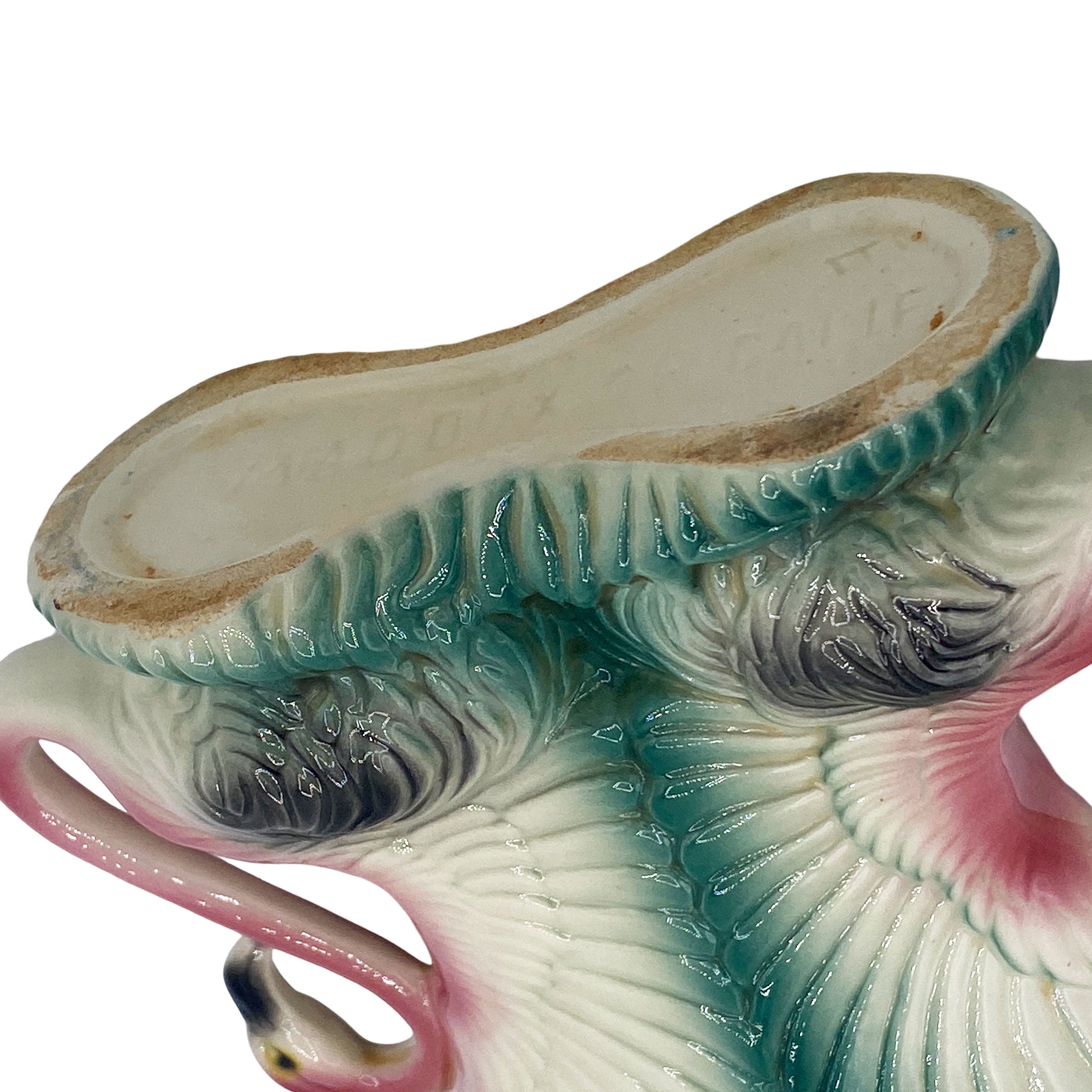 Bottom of large flamingo and vase reads: "Maddux of California"