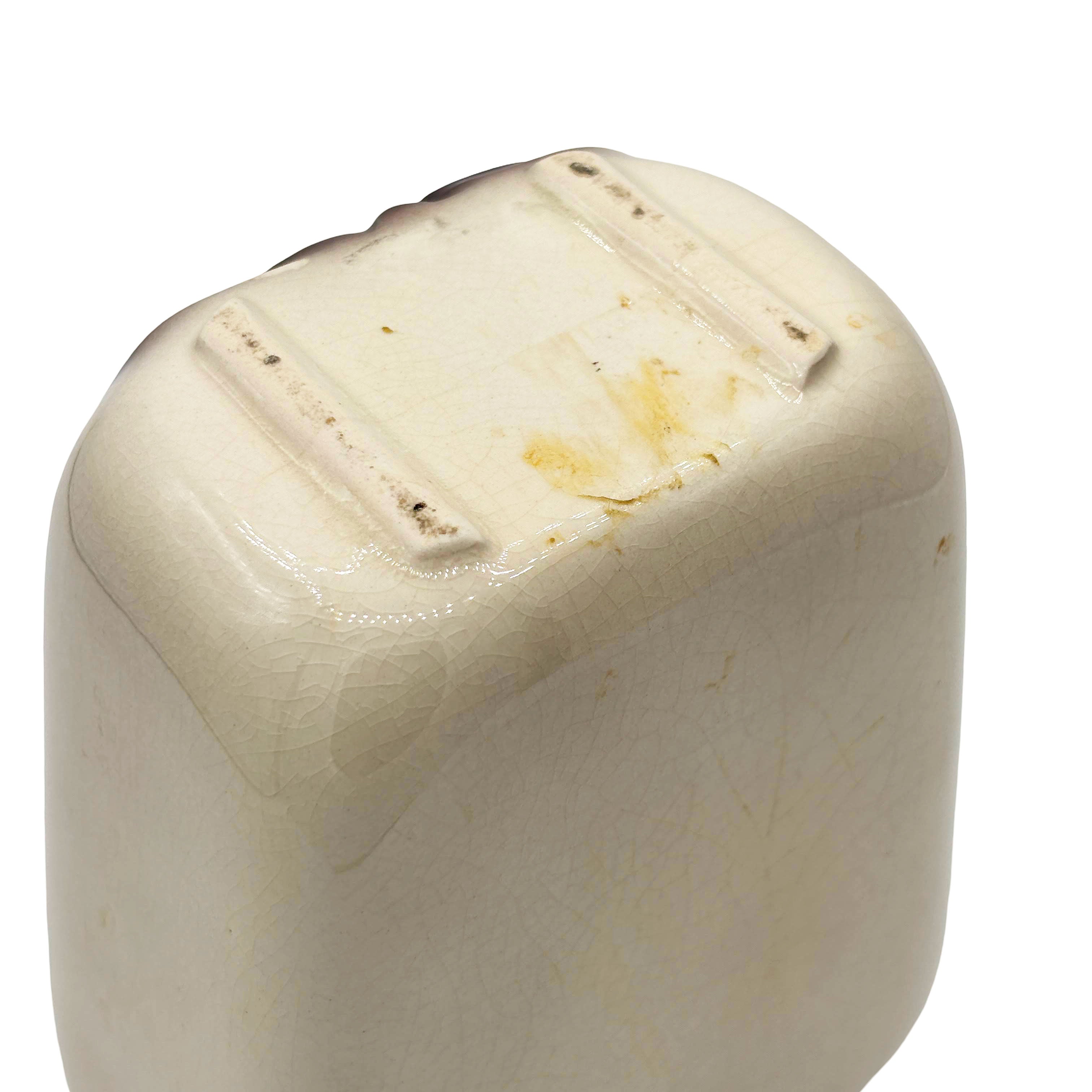 The creamy white or pale gray ceramic body features raised tropical leaves, often rendered in shades of rosy pink, vibrant red, or even chartreuse, capturing a distinctly Hawaiian/Polynesian aesthetic. Whether used as a vase for a fresh floral arrangement a great conversation starter.