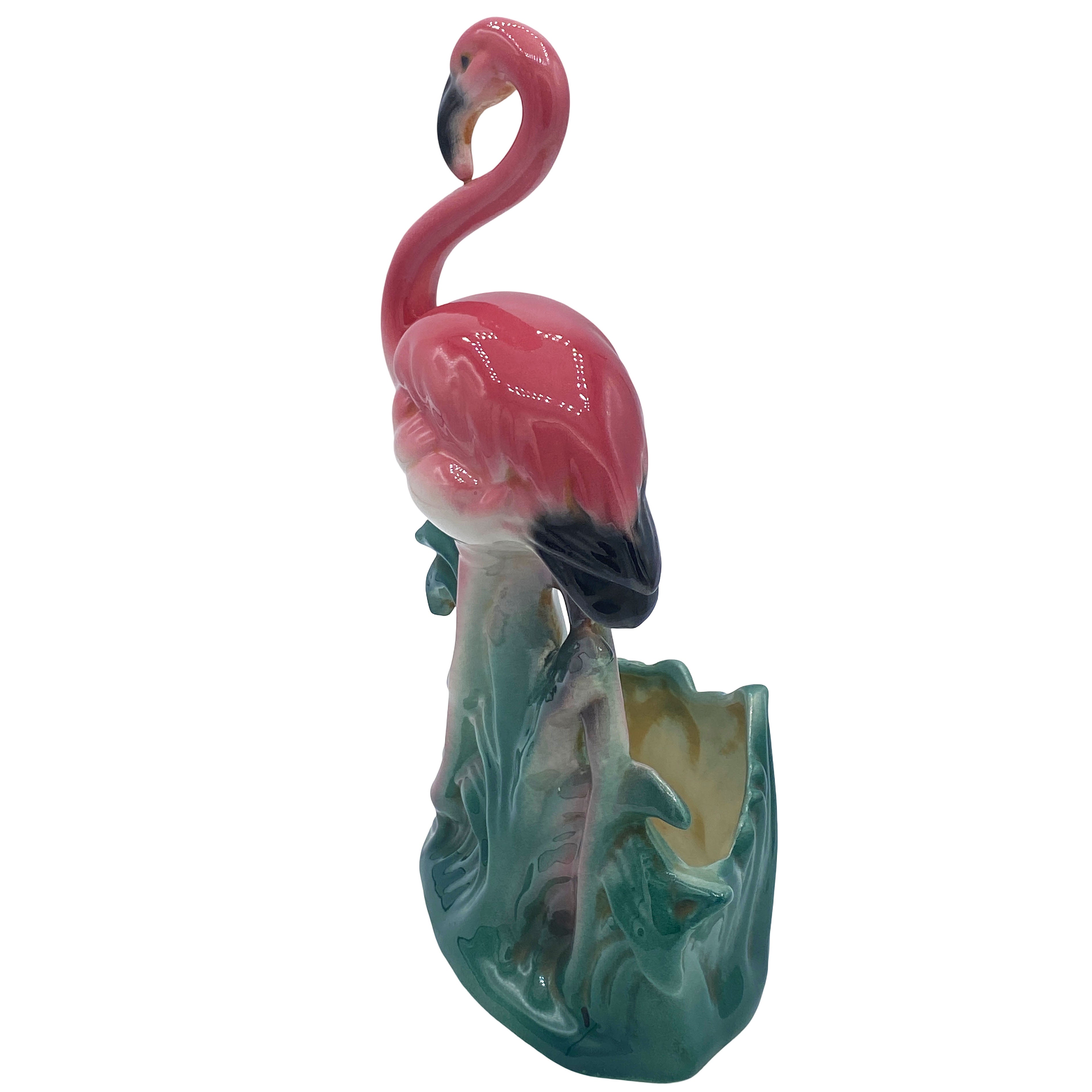 Mid-century "Lovers" Ceramic Pink Flamingo Flower Table Planter Set, California